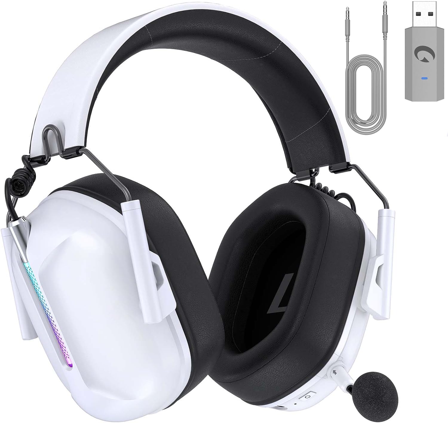 2.4GHz Wireless Gaming Headset for PS5, PC, Switch, PS4, Bass Sound, Bluetooth 5.3 Gaming Headsets with Noise Canceling Microphone, ONLY 3.5MM Wired for Xbox Series, 40H Battery (White)